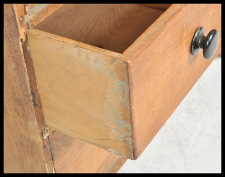 A Victorian pine 2 over 2 cottage chest of drawers being raised on turned legs with 2 short drawers over 2 deep drawers having ebonised knob handles. Measures: 83cm high x 99cm wide x 53cm deep.