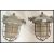 A pair of retro 20th Century industrial factory bulk cage lights, having a cast iron body, glass protection over bulb in a wire cage. Measures: 30cm high x 24cm diameter