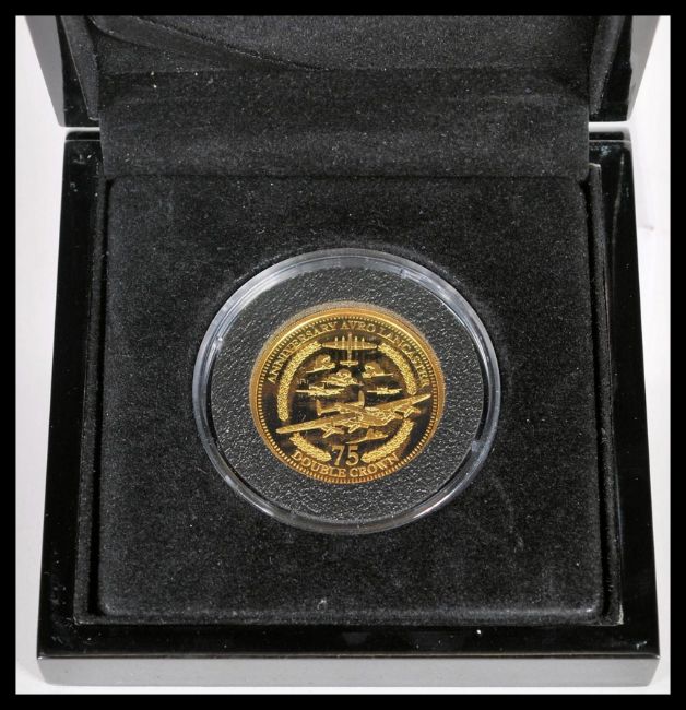 9ct gold Avro Lancaster coin - A Lest We Forget Association 75th Anniversary of the Introduction of The Avro Lancaster Commemorative gold double crown coin 2017 featuring a 28mm 9ct gold coin with 24ct gold plating weighing 4g. This milled edge proof coin is limited to 499 issues and comes complete in coin capsule inside fitted sleek black case with original certificate.