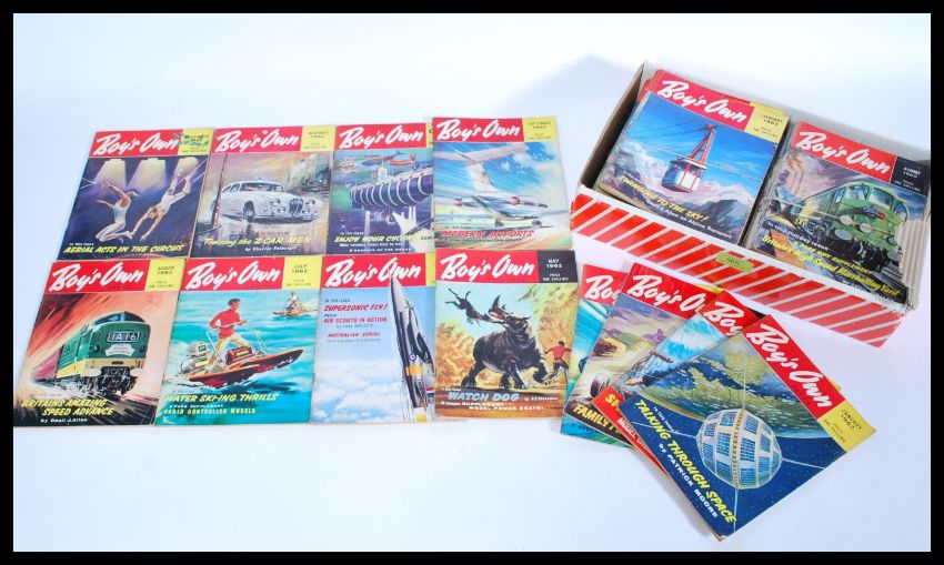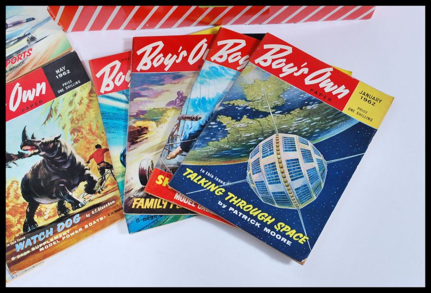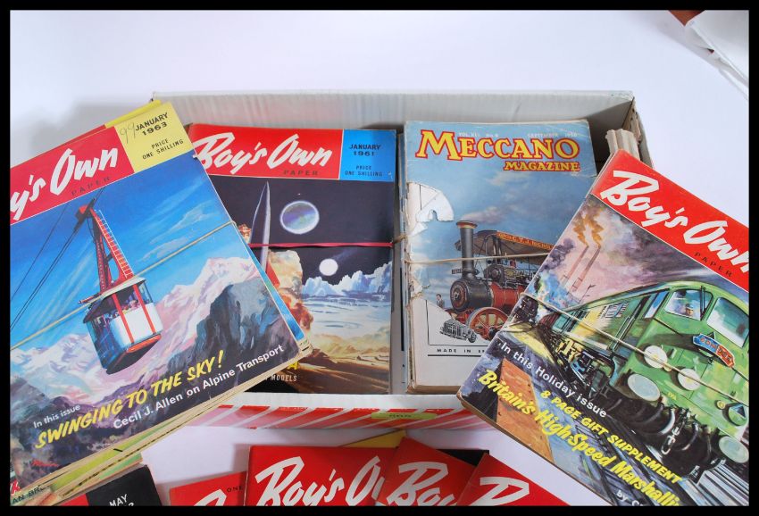 A collection of vintage mid century Boys Own magazines to include complete sets for 1961 and 1962, Aug, Nov and December for 1960 and Jan to Aug 1963. Together with a collection of Meccano magazines for 1957 complete, and sept, oct, nov and dec 1956
