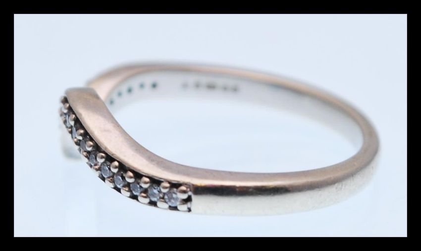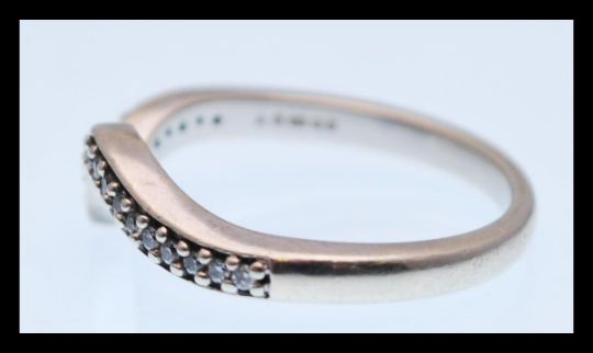 A hallmarked 9ct gold wish bone ring set with white stones. Hallmarked London 2006. Size Q.5. Total weight 3.6g.