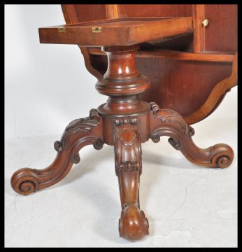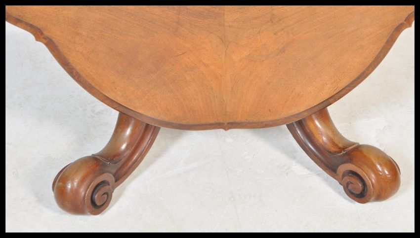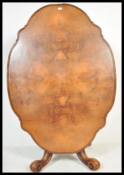 A 19th century High Victorian walnut tilt top breakfast loo table - dining table. Raised on shaped legs with castors having turned baluster column supporting an stunning figured walnut lozenge tilt top table top.