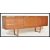 A mid century retro teak wood Danish influence sideboard credenza having tapering legs supporting a low and wide body comprising a series of cupboards and drawers. Measures: 73cm high x 205cm wide x 42cm deep.