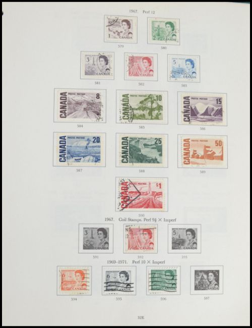 Canada stamps: a used collection in a pre printed SG album from 1868 to 1980s including various. Album measures 33 cm high and 25 cm wide.