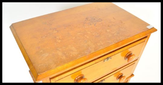 A late 19th / early 20th Century satin walnut tallboy chest on chest, the chest with a configuration of five graduating drawers fitted with turned knob handles raised on a plinth base. Measures: 121cm high x 68cm wide x 42cm deep.