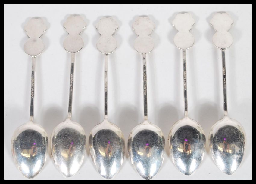 A set of six cased silver hallmarked teaspoons, the teaspoons with Hong Kong hallmarks.