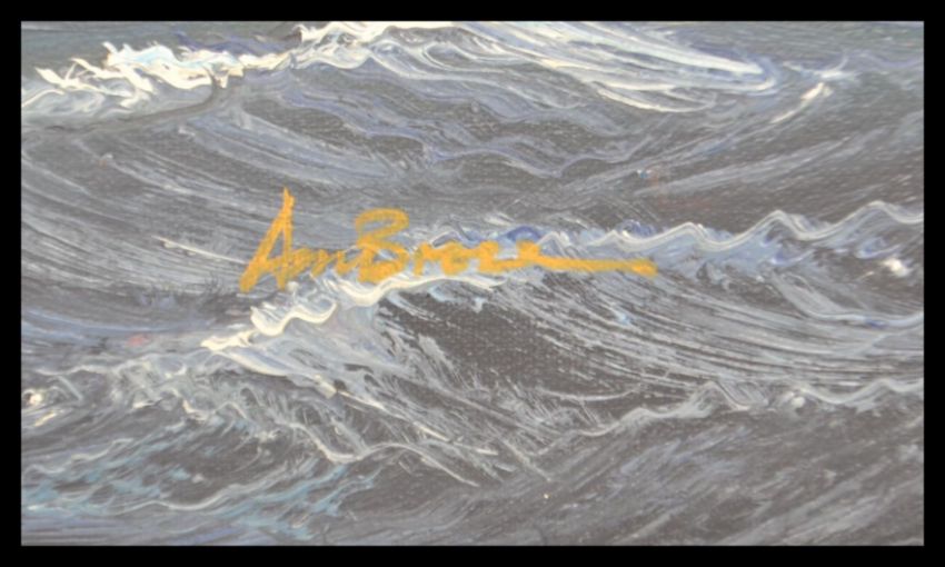 Two 20th Century acrylic on canvas paintings depicting sailing ships to include a painting of the ship sailing at dusk and another of the ship sailing during a storm. Both set within gilt frames. Signed to the corners with an illegible signature possibly Ann Broze. Measures: 60cm high x 50cm wide.