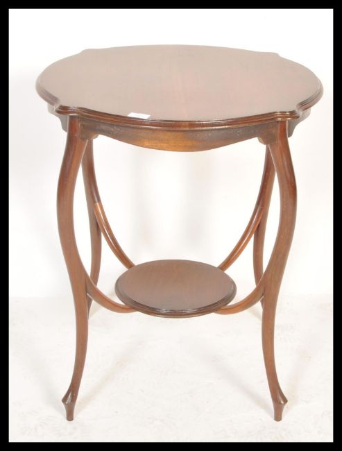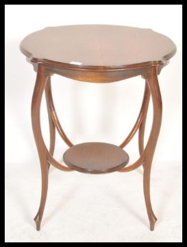 A Victorian mahogany lamp / side occasional table having pie crust top raised on slender supports with lower tier