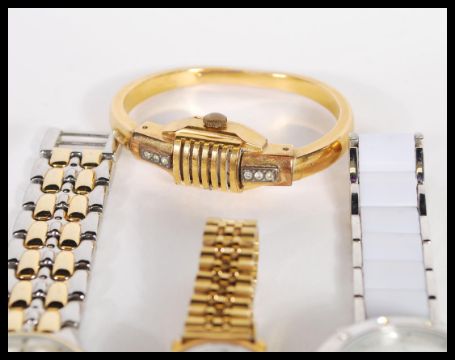 A collection of vintage watches to include a Rotary moonphase examples, bracelet watch etc.