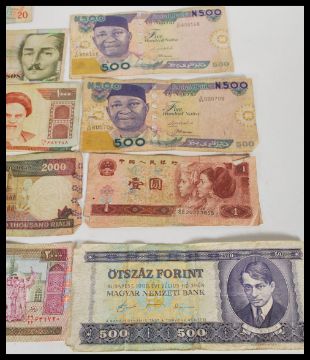 A collection of World banknotes paper money currency dating from the early 20th Century to include many Iranian 10000 Rials notes, Columbian, Nigeria, France etc.