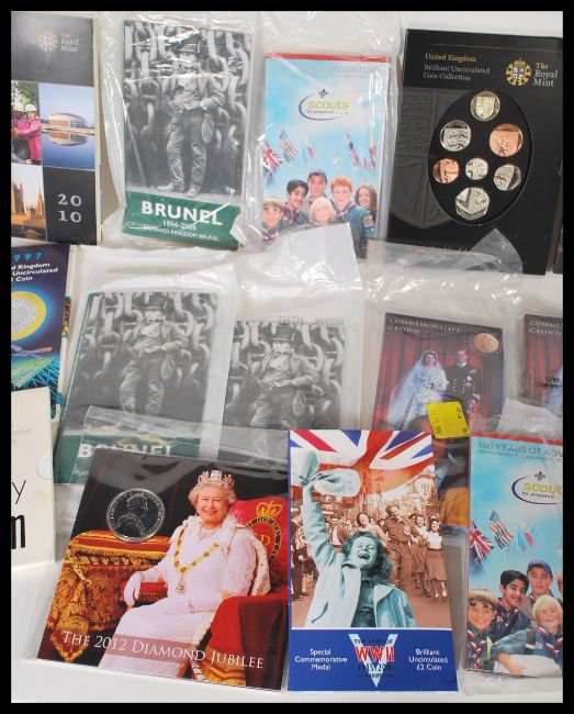 A collection of uncirculated coins, all retaining original cases and appearing to be sealed