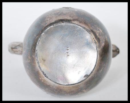 A 19th Century silver plated fluted tapering pedestal vase with chase decorated floral swags and border in relief to the rim together with a similar aged teapot in the form of a pair. 17cm high vase.