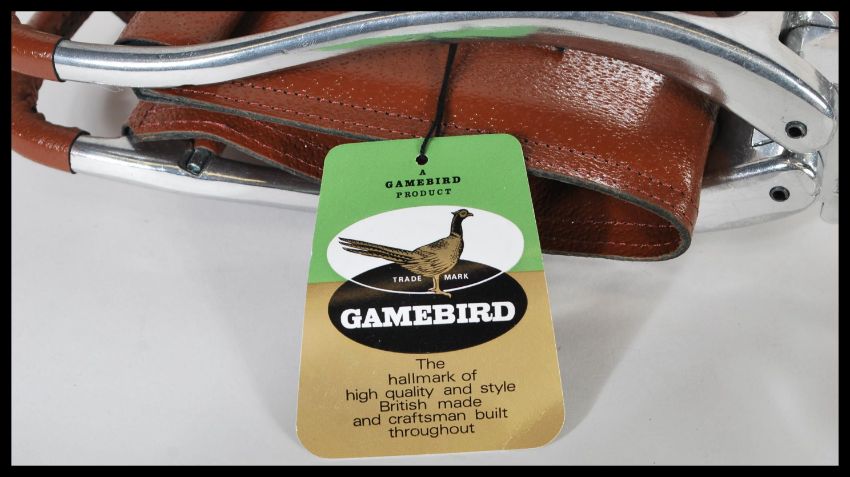 A vintage boxed brown leather and white metal shooting stick. 91cm long.