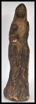 A believed 18th Century carved wooden ecclesiastical figurine depicting the Virgin Mary and Child having remains of early polychrome paint. 53cm high.