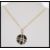 A stamped 18k gold pendant of round form set with a black stone with a cross over design, on a yellow metal chain. Total weight 10.7g. Pendant measures 2.5cm diameter.