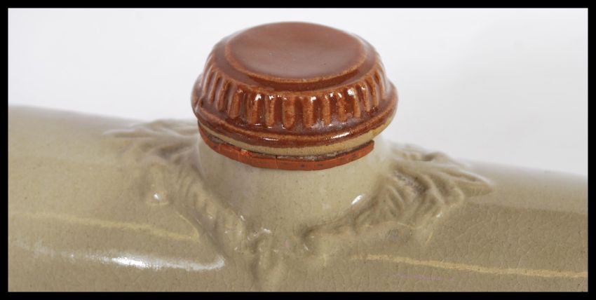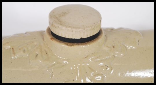 A pair of 19th Century Victorian his and hers stoneware salt glazed bed warmers having coloured stoppers. 13cm high 24cm wide.