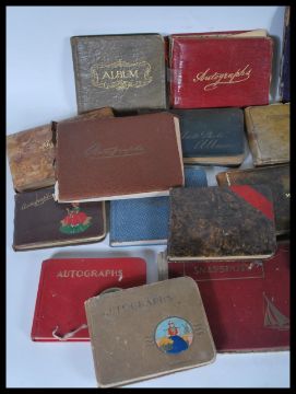 A large collection of approx 35x assorted antique / vintage autograph books - all largely filled with poems, sketches, ditties, paintings, poems and verses. Some charming entries. Largely early - mid 20th century. Some snapshot / photograph albums present. Generally 1890 to 1950's. Great interesting collection.