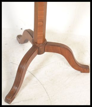A late 19th Century / 20th century french two tier Kingwood and brass gallery dumbwaiter etagere. Each tier with gilt gallery being raised on an hexagonal column upright on tripod splayed legs base . Measures 89cm high x 58cm wide x 40cm deep.