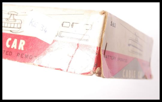 A vintage original Japanese Bandai Baby tin plate battery operated ' Cable Car '. The toy cable car still within it's original box. Measures; 18cm wide.