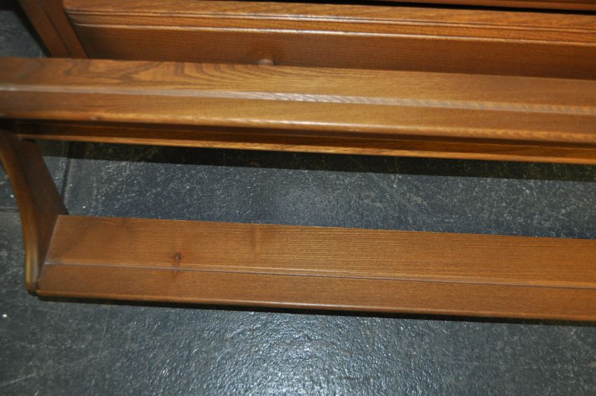 A 20th Century two tier Ercol blonde Delft plate rack with hanging brackets attached.