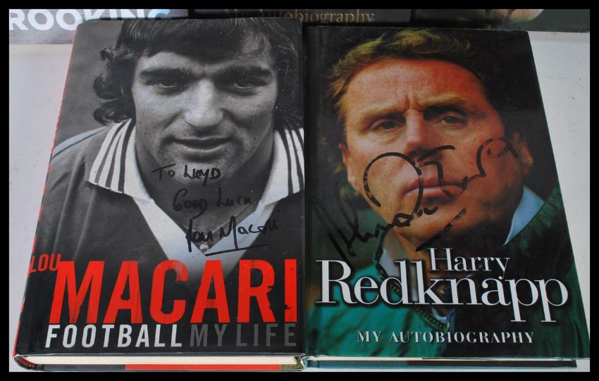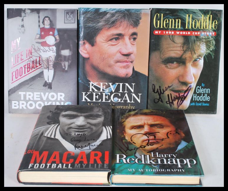 Sporting Football Interest - a collection of signed autobiographies to include Kevin Keegan 'My Autobiography' , Glenn Hoddle ' My 1998 World Cup Story ', Harry Redknapp ' My Autobiography ', Lou Macari ' Football My Life 'and Trevor Brooking ' My Life in Football'.