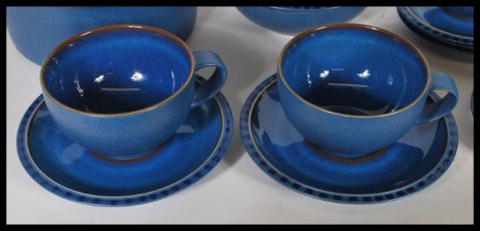 A contemporary Denby stoneware ' Reflex pattern ' dinner service comprising plates, side, plates, bowls, teapot and tureen all in a blue colourway
