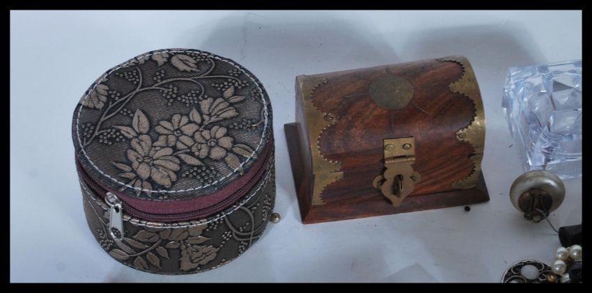 A large collection of vintage mixed costume jewellery to include a wide variety of necklaces, a selection of gold plated earrings many set with white stones, bangles, cocktail watches, simulation pearls, a rhinestone collar necklace and much more.