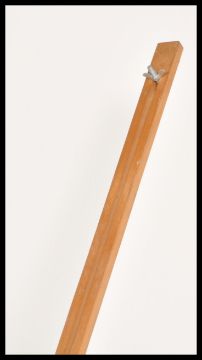 A 20th Century wooden folding artists easel of large form, raised on a tripod support. Measures: 177cm tall.