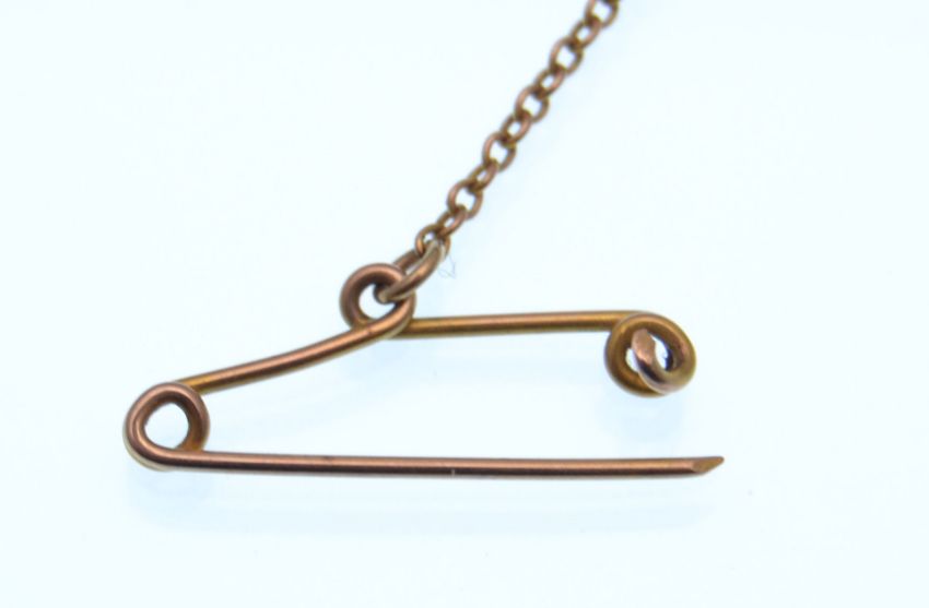 An Edwardian 15ct gold pearl and peridot bar brooch. Marked 15ct. Total weight 3.5g. Measures 5cms.