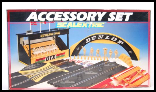 A vintage Scalextric Accessory set C221 Grandstand Dunlop figures set. Appears complete within it's original box.