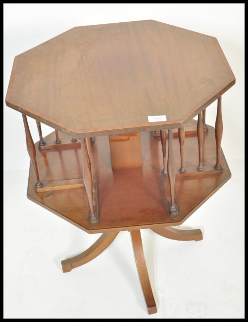 An early 20th century Edwardian mahogany revolving library bookcase of square form having boxwood inlay decoration. Measures 70 cm x 55 cm diameter.