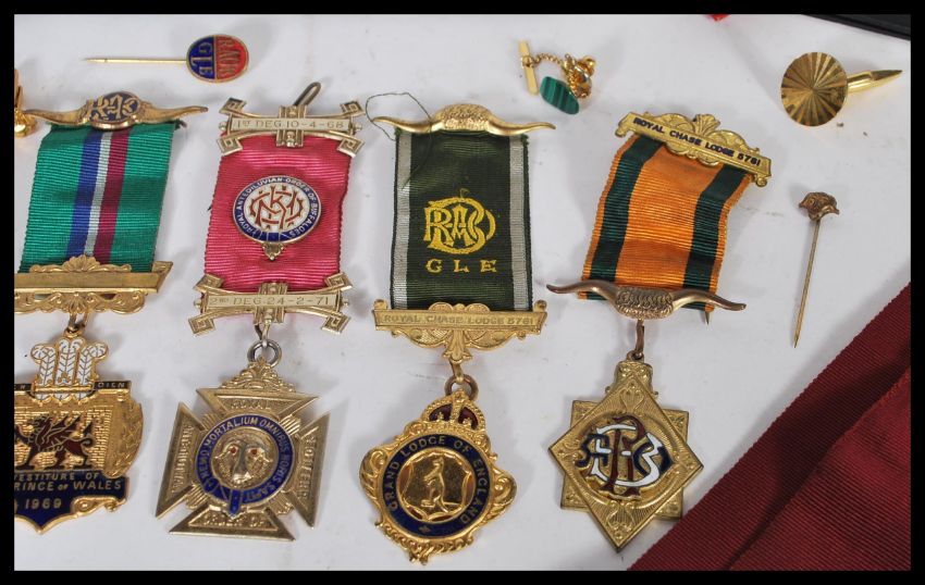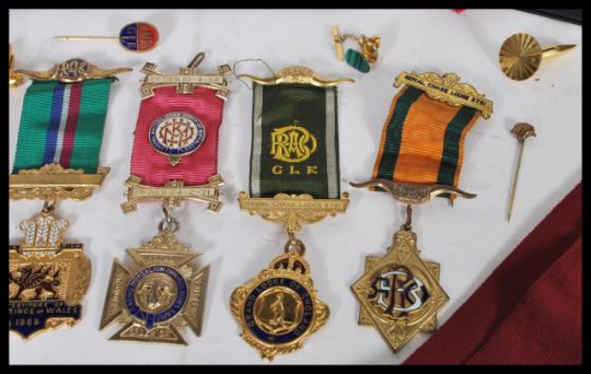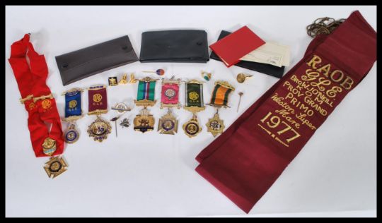 Masonic / Lodge Interest. A collection of Order Of Buffalo items to include sashs, cufflinks, pins, silver hallmarked medals.