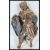 A believed 18th Century biblical nativity figure depicting one the the three Magi / Kings, probably Balthazaar bearing a gift of myrrh, constructed from wood and metal having moulded plaster details, the figure is dressed in coloured drapery made from canvas set with plaster and wears a crown to his head. The figure was once painted in vibrant colours with gilt detailing and was  presumably bigger ensemble. 24cm high.
