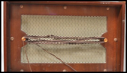 A vintage retro mid 20th Century 1950's HMV His Master's Voice tiger oak cased record player having the original Garrard 209 deck and stylus along with the rarely seen matching amplifier speaker. Both having original grille fronts.