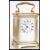 A 19th Century Victorian gilt brass cased carriage clock by Russell Ltd of Liverpool. The white enamel face having Roman numeral chapter ring with faceted hands. In leather case. 14cm high 10cm wide.