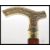 A malacca walking stick having a brass hooked handle having embossed floral detailing. Measures 92cm.