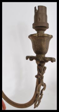 A pair of early 20th Century gilt brass Adams revival wall sconces having ormolu decoration with swag design and floral sconces. 32cm high 20cm wide.