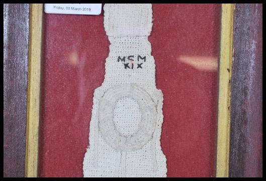 A WWI first world war commemorative fabric sampler depicting the cenotaph, reading 'The Glorious Dead', in a wooden and gilt frame. Measures 34cm-high 20cm-wide.
