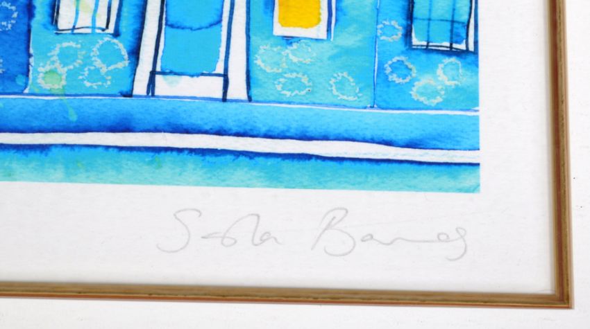 Sasha Barnes - A contemporary 21st century British Artist Giclee prints depicting scenes from The City Of Bath. The large print in purples and pink being of ' Cavendish Crescent ' and the other unknown. Both signed in pencil to bottom right corner, the larger picture limited 2/50 and the other being an A/P Artist Proof.