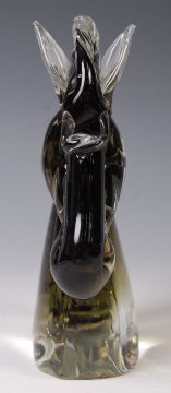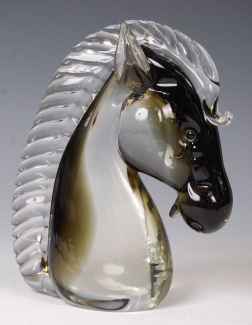 Believed Archimede Seguso - Murano - A vintage Italian 1970's studio art smoked glass sculpture depicting a horse head with flared mane and open jaw. Measures; 18cm tall.