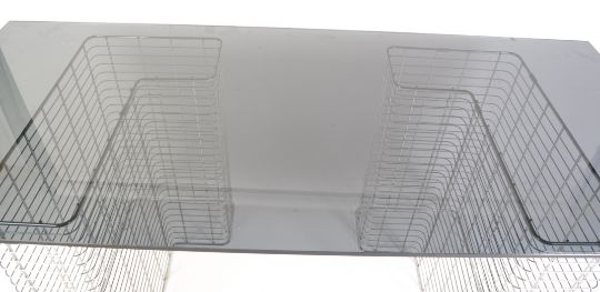 Habitat - A 1980's 20th century modernist retro chrome wire and glass desk comprising of two ' L ' shaped pedestal of chromed wire form with a toughened black glass desk top.