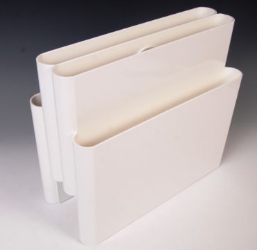 After Giotto Stoppino - Portariviste - A contemporary white molded plastic magazine rack having four pulled elliptical forms being stepped to either side. Measures; 35cm x 19cm x 40cm.