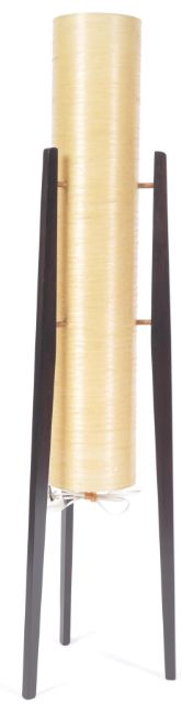 Novoplast - ' Rocket Lamp ' - A mid 20th century retro vintage tripod free floor standing / standard lamp having a tall cylindrical fiberglass spun form raised on three shaped ebonised teak wood legs.