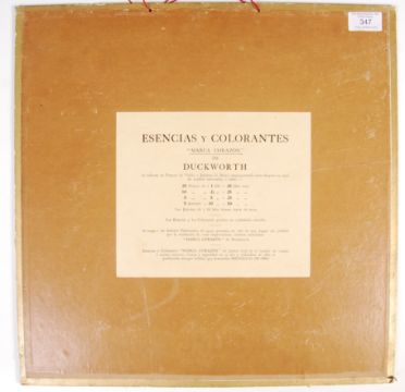 Duckworth - Stephan - Two original 20th century retro vintage advertising signs. The Duckworth sign being in French and printed to card depicting medicine jars with essence and colours to front. The Stephan barbers sign being enamelled tin and depicting a man at two angles, showing the hairstyle. Measures 43 cm x 47 cm.