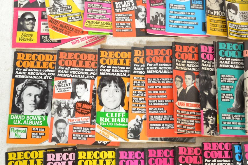 A good collection of vintage Record Collector magazines from the 1970's to 1980's featuring many famous bands and artists including The Beatles, Elvis etc.