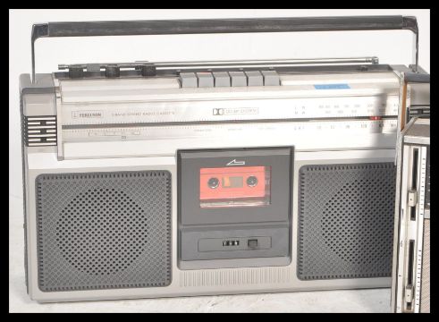A collection of vintage retro 20th Century radio and radio cassette players to include a Ferguson 3 band stereo radio cassette player,Toshiba MQSS music quick selector system and a  Grundig Melody Boy 1000,