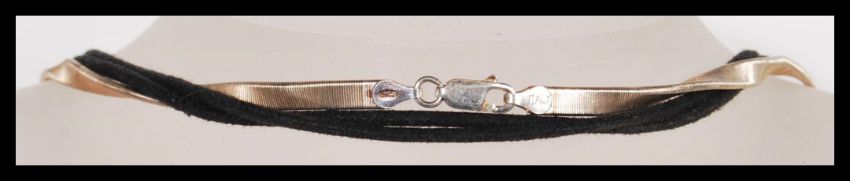 A sterling silver fine snake link rope twist necklace chain along with a silver large necklace hand of Fatima pendant with pierced decoration and central green hardstone on black ribbon necklace. Total weight 46 grams. Pendant measures 10 cm high x 7 cm wide.