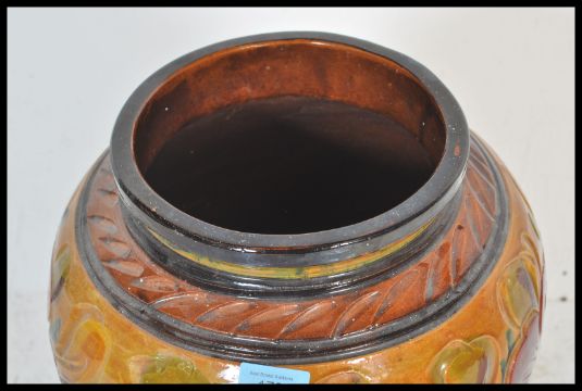 A large early 20th Century Art Nouveau pottery vase / stick stand of bulbous form having hand painted floral decoration.