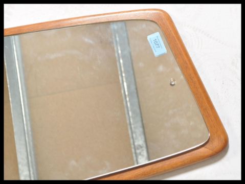 A vintage retro 20th Century teak wood Danish influence wall mirror having a frameless wood back with mirror panel. The wall mirro of oblong shape. Measures 76 cm high x 182 cm wide x 43 cm deep.