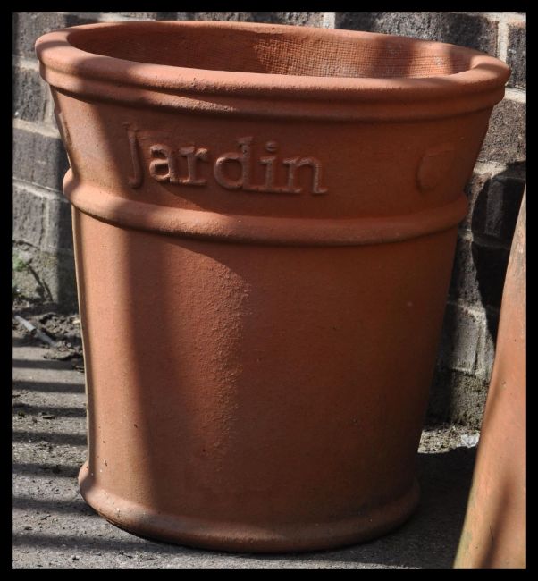 A collection of vintage 20th Century well weathered terracotta rhubarb forcers, one stamped James Matthews Weston Super Mare together with a stone garden pot